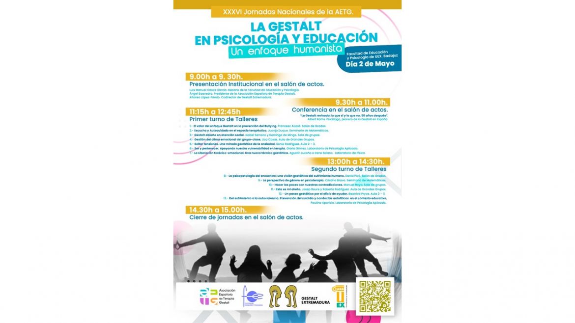 El próximo 02 de Mayo de 2024, en la Facultad de Psicología (Badajoz), tendrá lugar la Jornada "Gestalt en Psicología y Educación. Un enfoque Humanista".