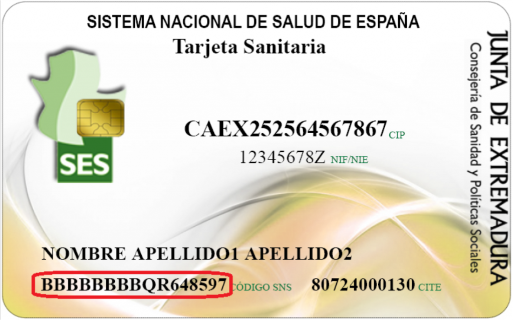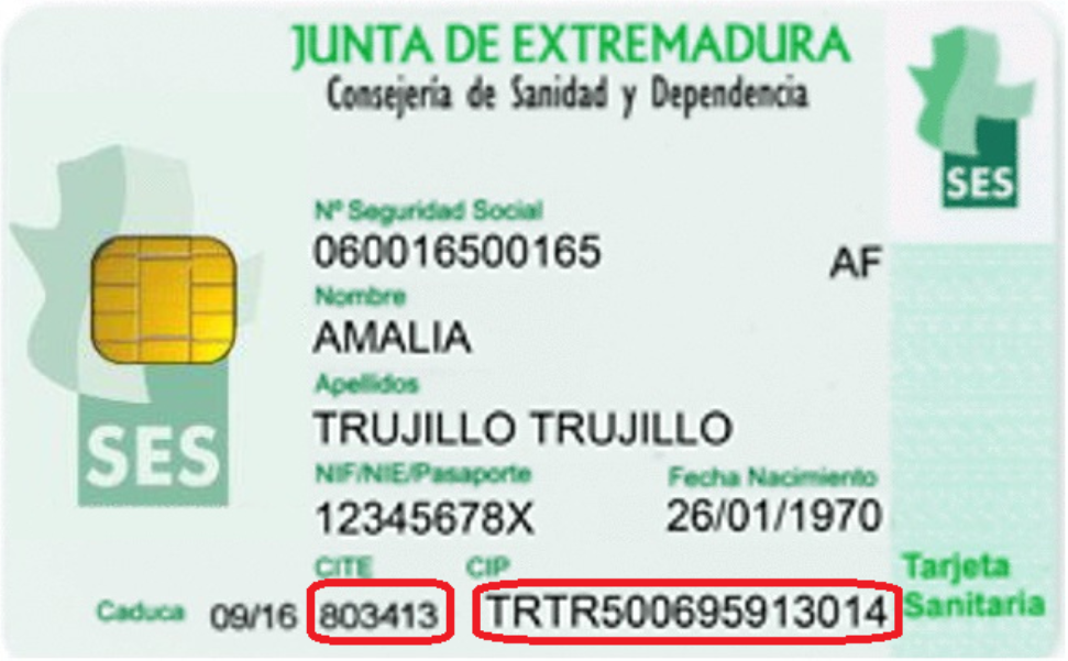 Para los casos en los que su tarjeta sanitaria no incorpore el “Código SNS” se deberá proporcionar el CIP (“Regional Person Identifier” para los farmacéuticos europeos), que es un código de 4 caracteres alfabéticos seguido de 12 caracteres numéricos y el CITE (“Region Identifier”), que para Extremadura es siempre el valor 803413: